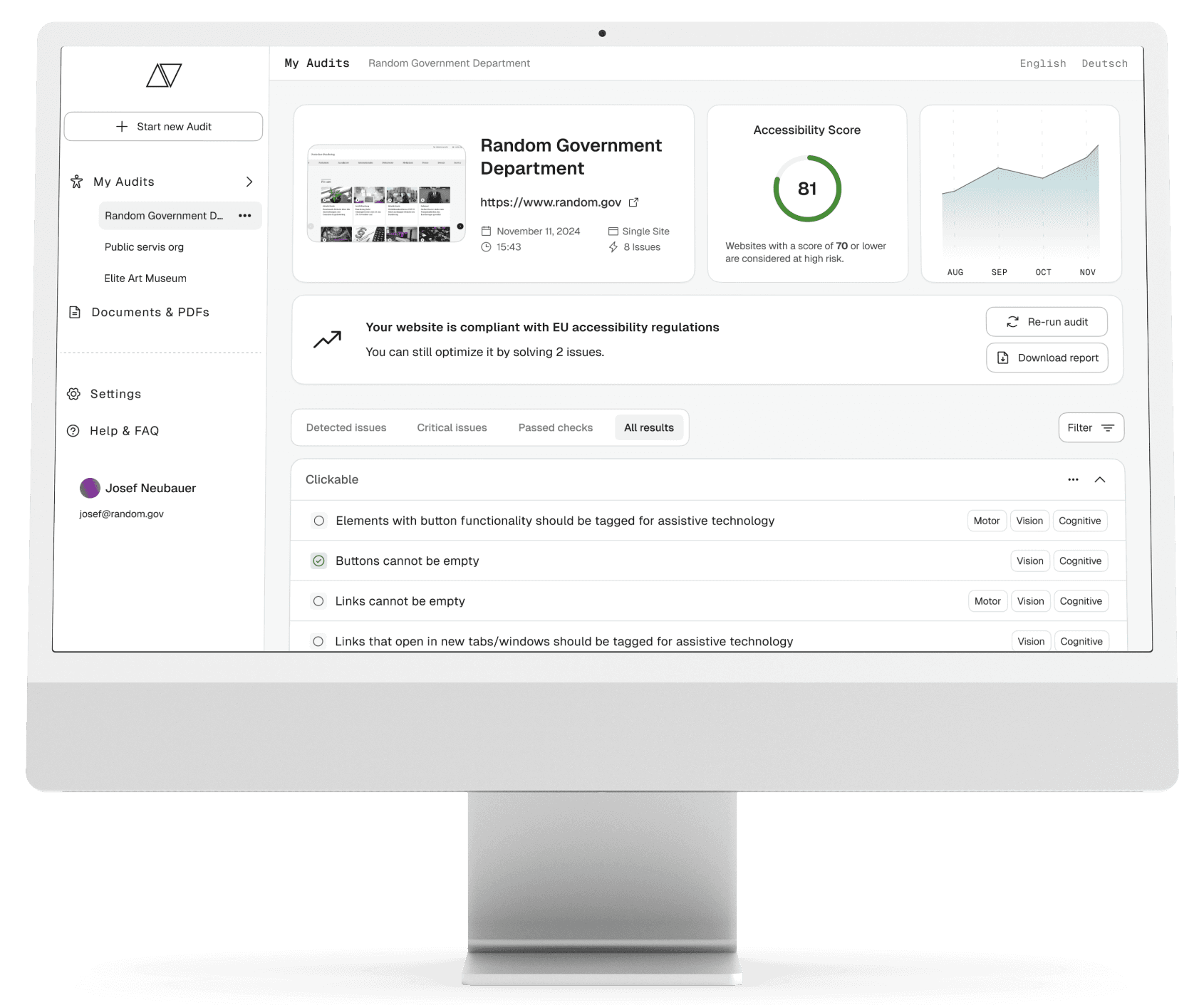 Identify barriers and ensure WCAG & EUAA compliance with actionable reports.