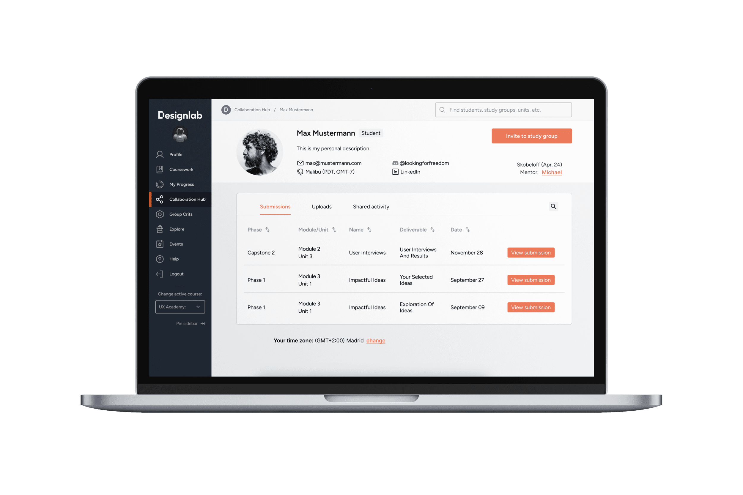 Redesigning key parts of an online learning platform to make peer collaboration, group-crit booking, and progress visibility easier to understand and use.